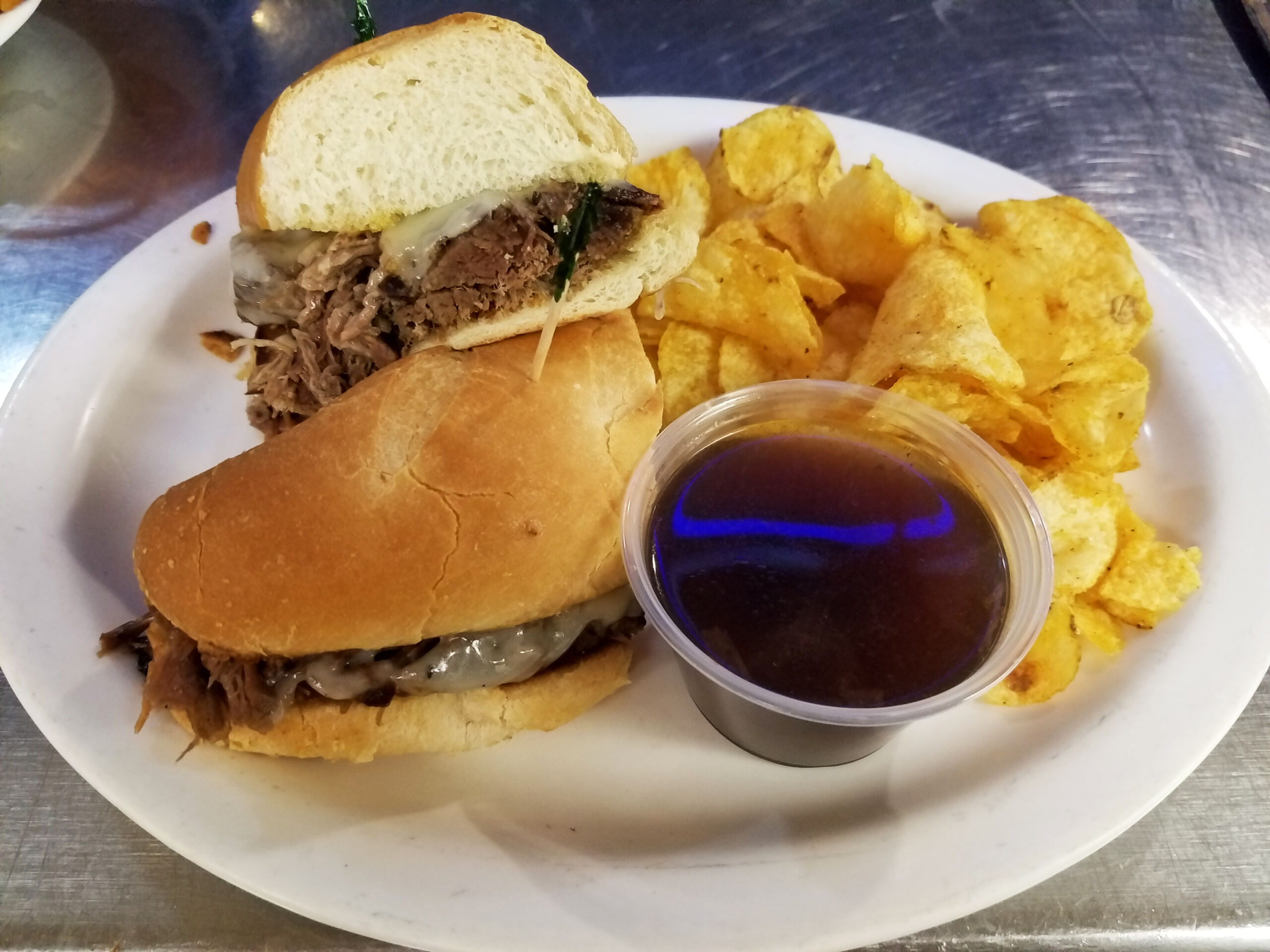 $9.99Our version takes shredded braised beef short rib topped with melted Swiss and served it with a side of Au Jus.