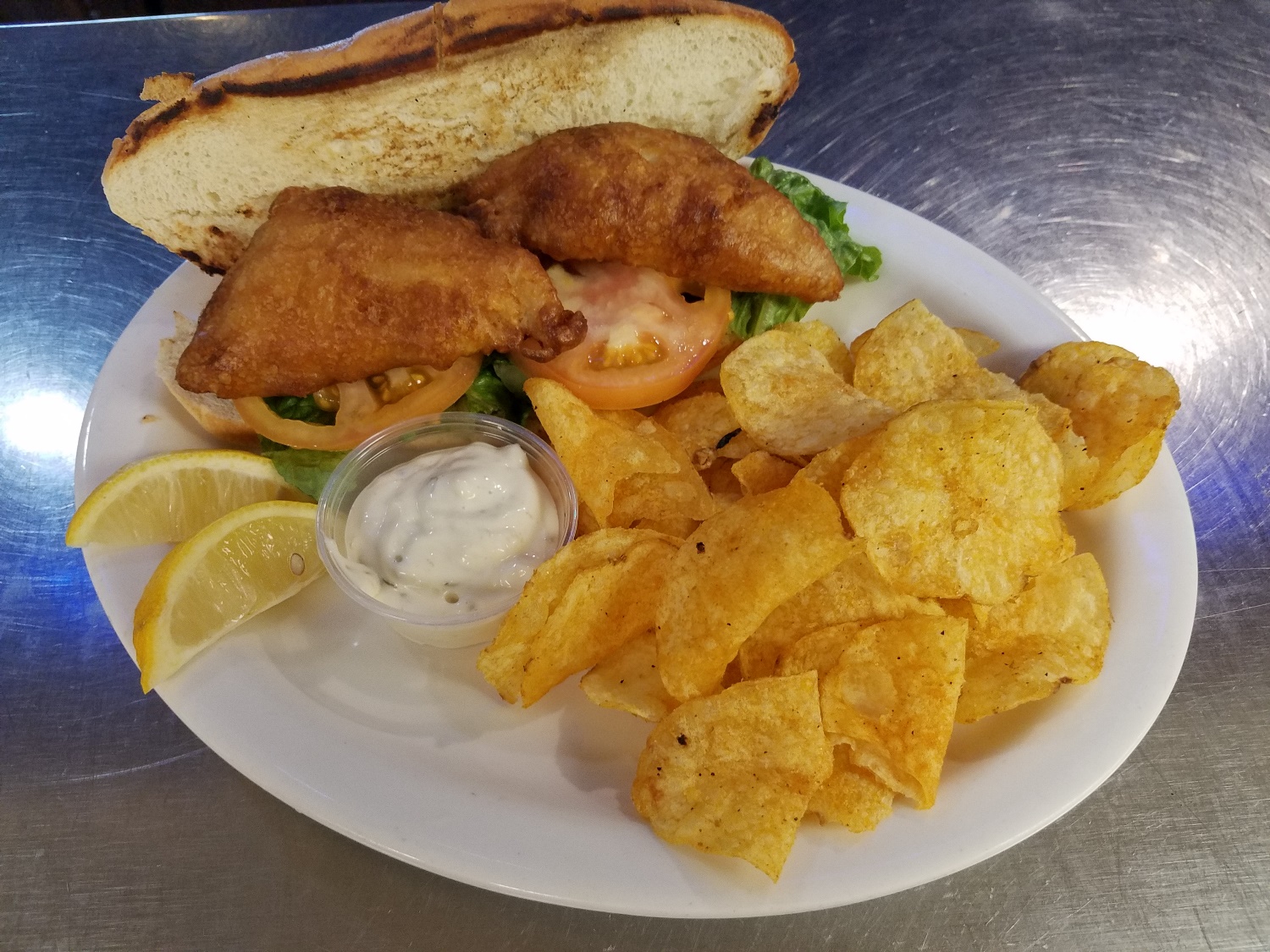 $9.99Deep Fried Canadian Walleye served on a toasted hoagie roll with lettuce, tomato, lemon wedge and a side of tartar.