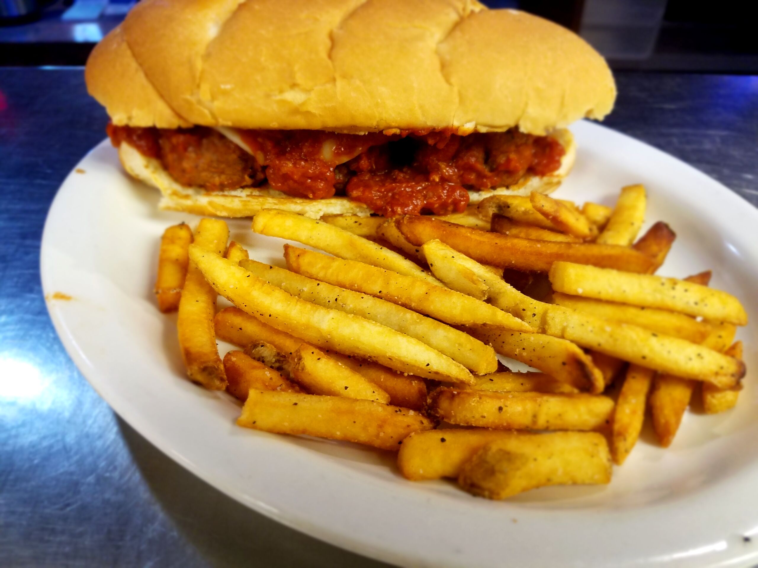 $9.99A grilled hoagie filled with hand-blended meatballs, smothered in marinara sauce, and topped with provolone cheese. YUM!